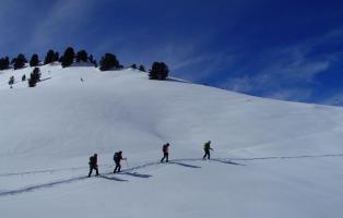 Am Samstag starteten wir unsere Schneeschuhtour im überwiegend unberührten Neuschneegelände über die Adolf-Pichler-Hütte zum Sonntagsköpfl (2.096m). Begleitet wurden wir von herrlichem Sonnenschein und phantastischen Bergaussichten.
