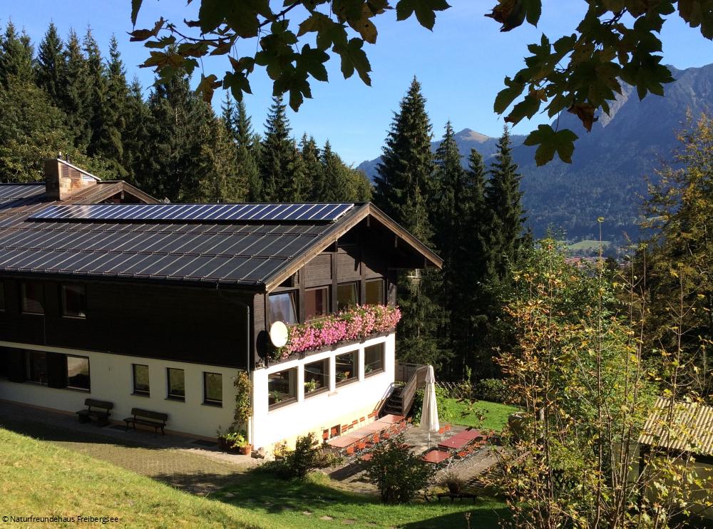 Das NFH liegt oberhalb Oberstdorfs, zwischen Freibergsee und Talstation Söllereckbahn, 1050 müNN.